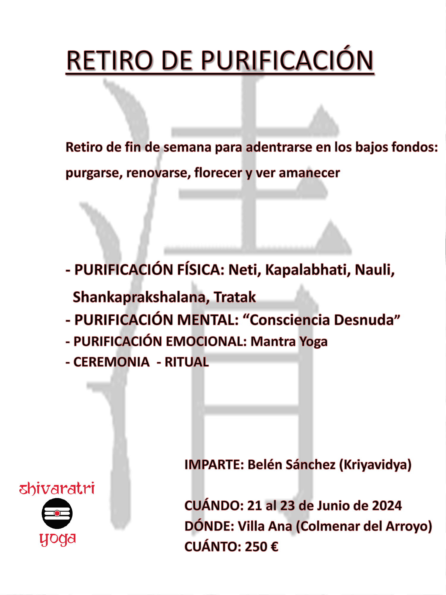 OM NAMAH SHIVAYA ¡¡Ven a celebrar Mahashivaratri!! La escuela de yoga Shivaratri está erigida en honor a esta energía divina. Rendiremos un pequeño homenaje a Shiva y su poder transformador durante la mañana del 9 de marzo. Dedicándole nuestra práctica física, energética, emocional y mental. Una oportunidad única para celebrar una de las grandes festividades en India. Rituales en memoria de "lo sin comienzo y de lo sin fin", del infinito… Leer más